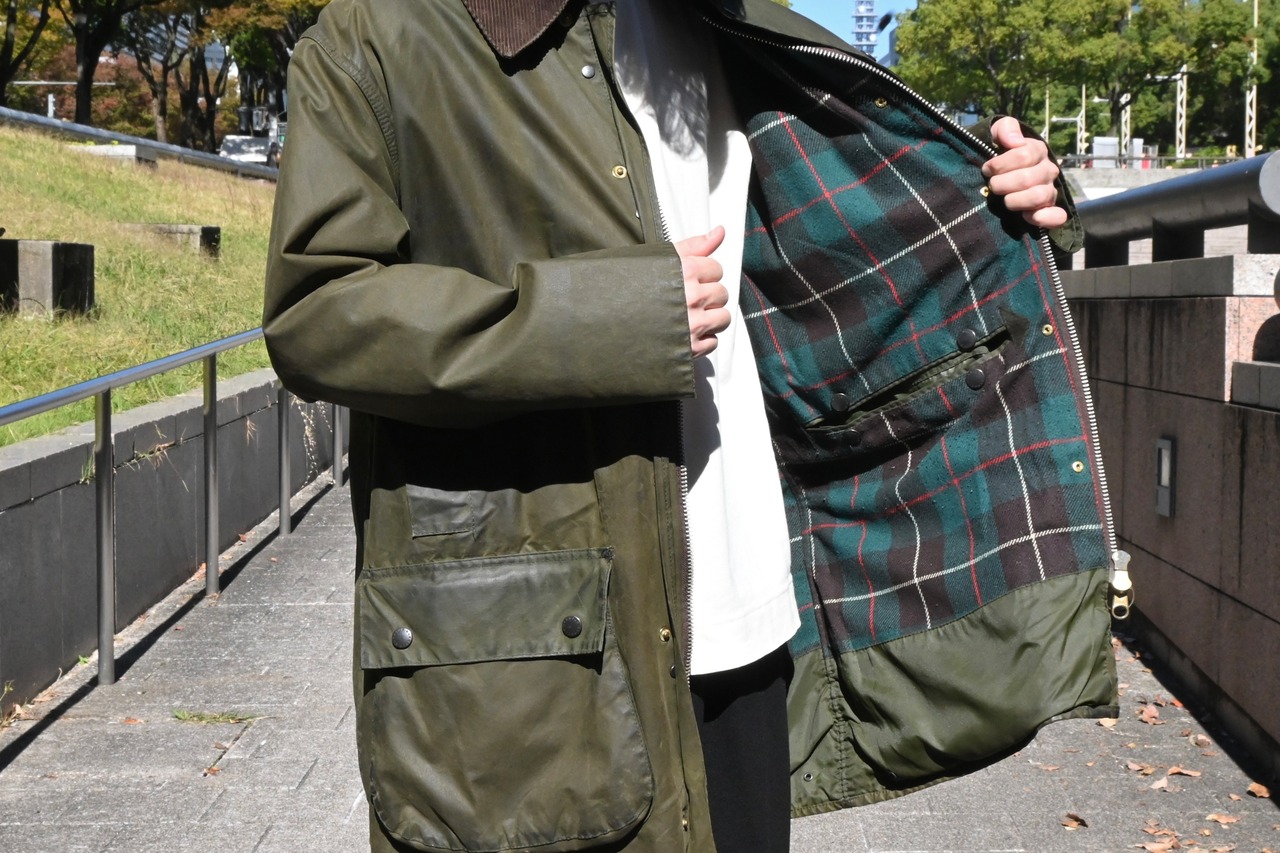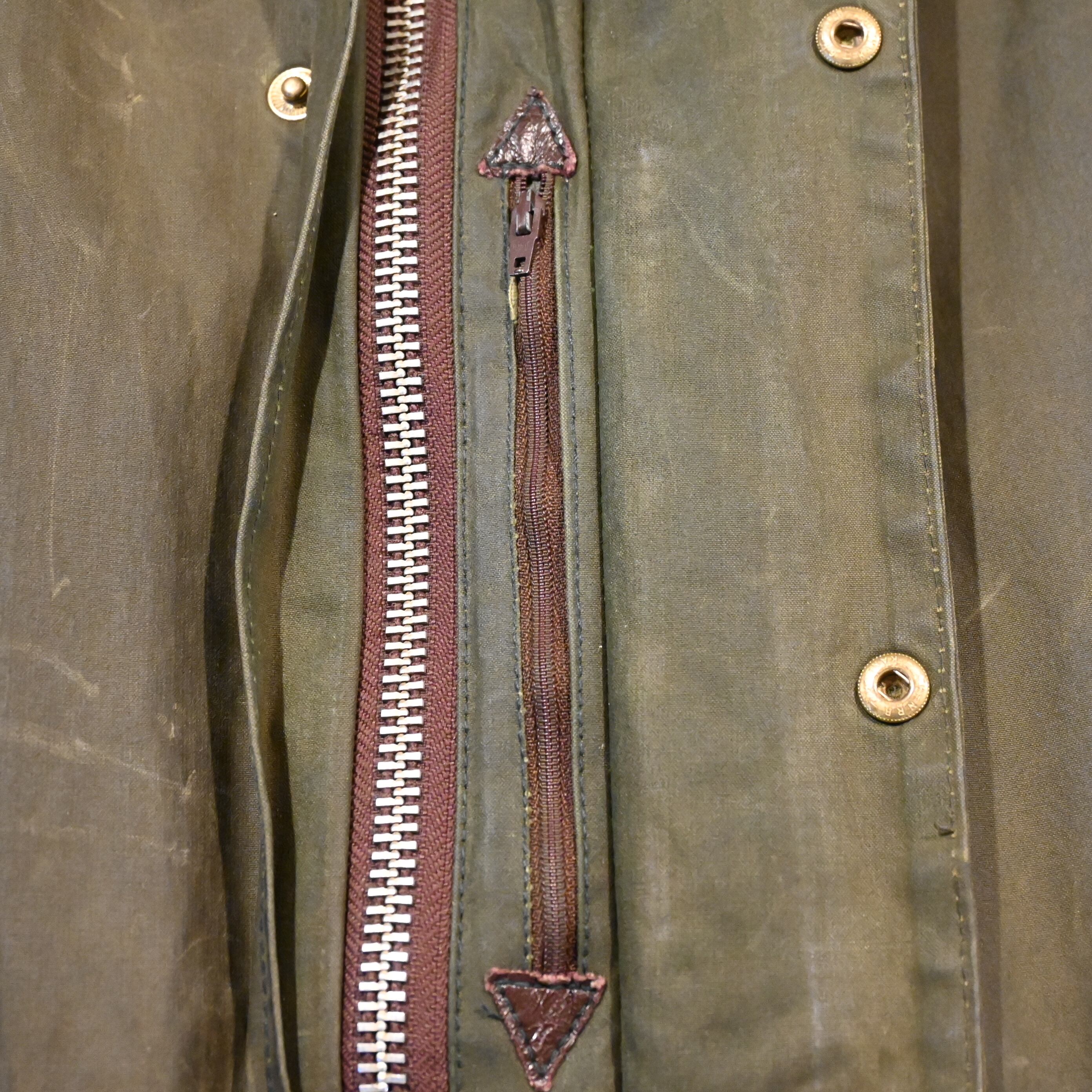 アウトドアユースのアイテムとして比較的コンディションの悪いものが多いオールドのバブアーですが、かなり色も残っており汚れも少ない一枚です。