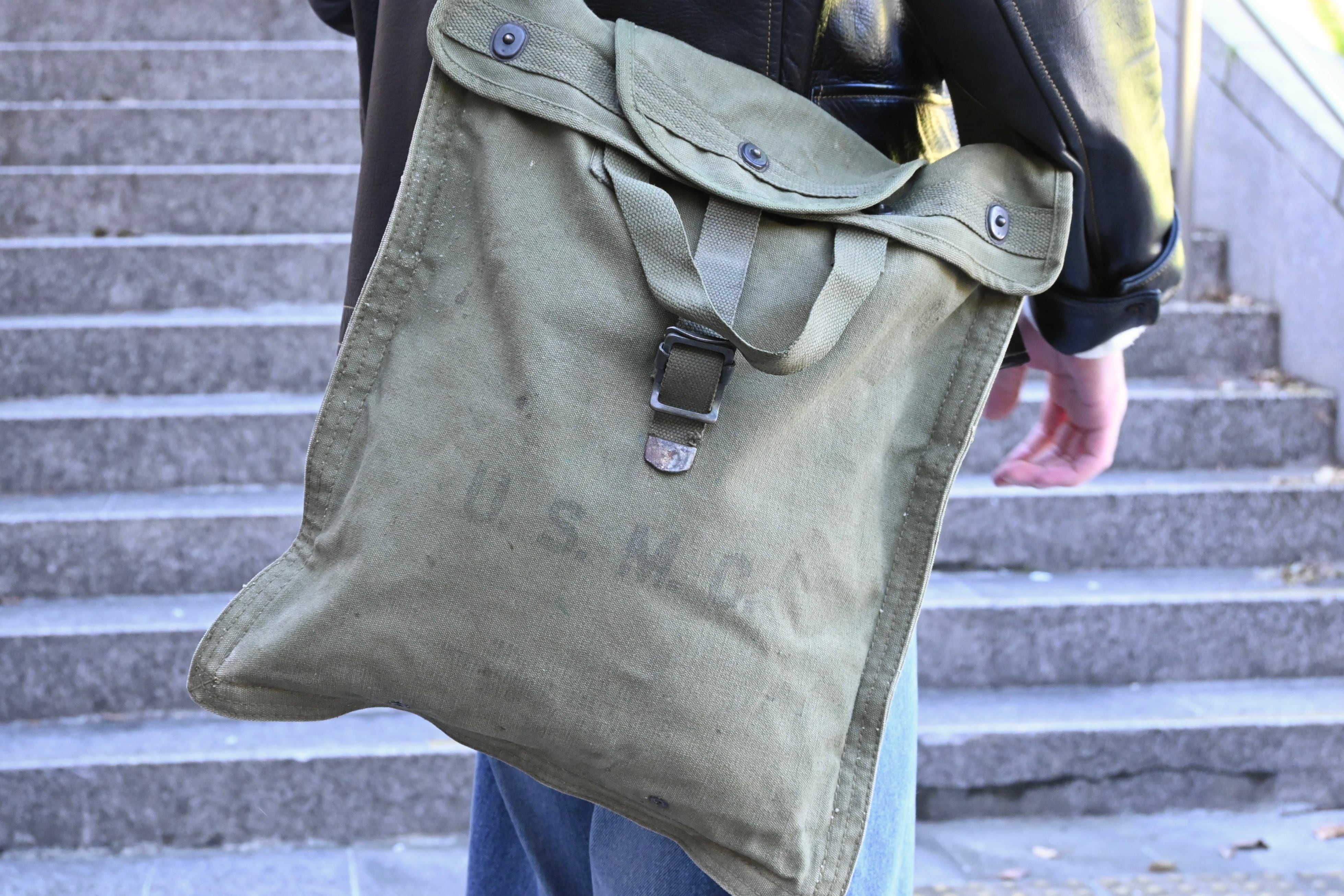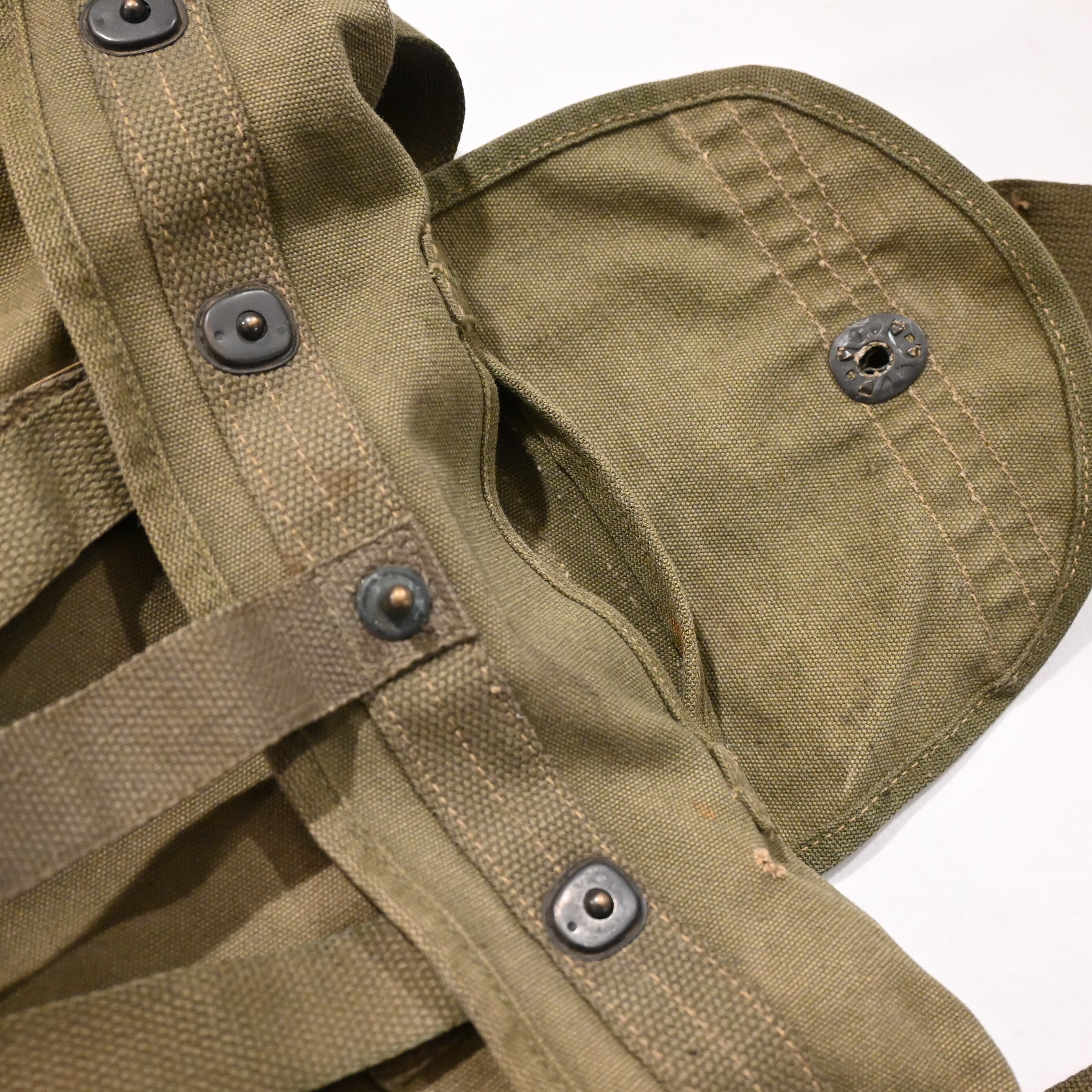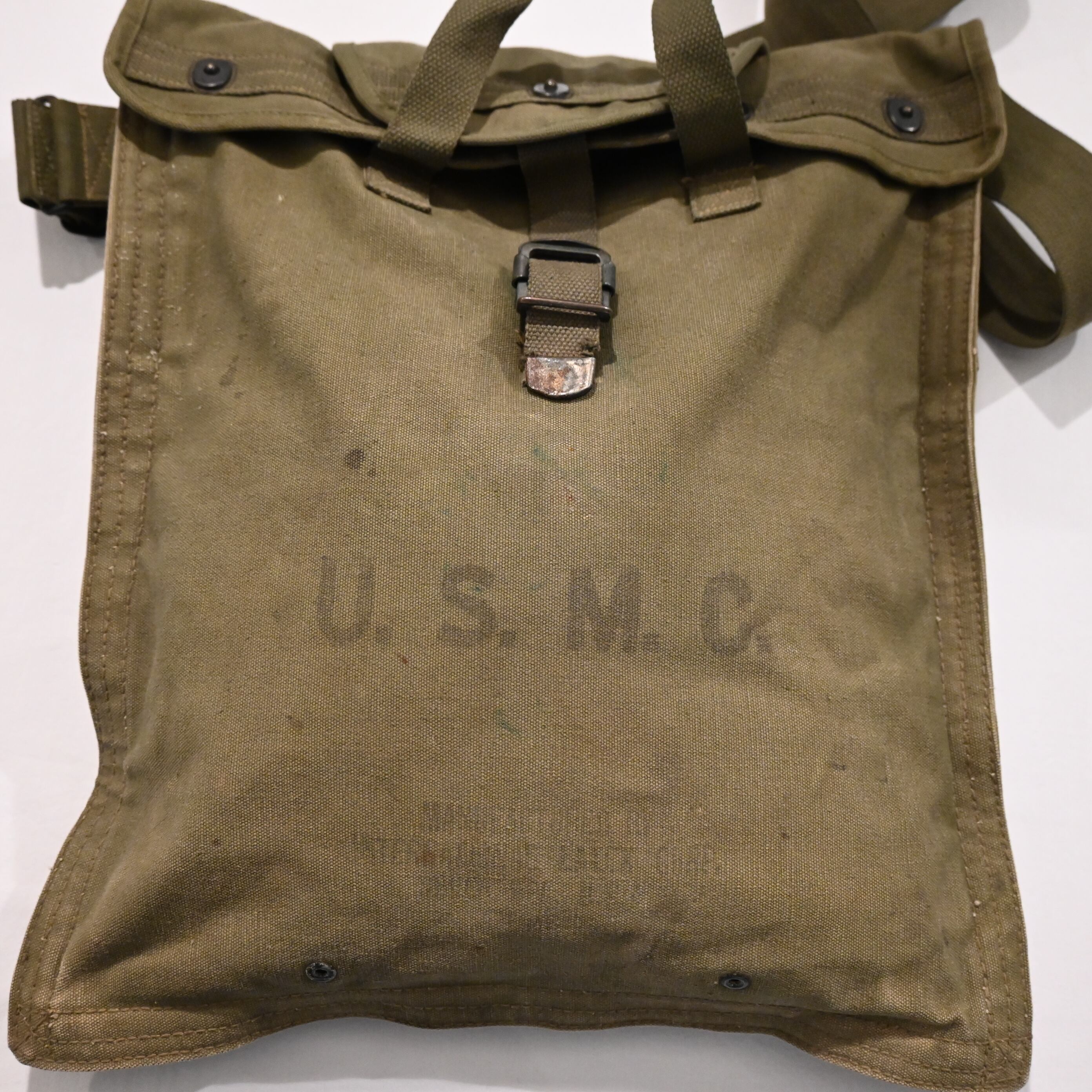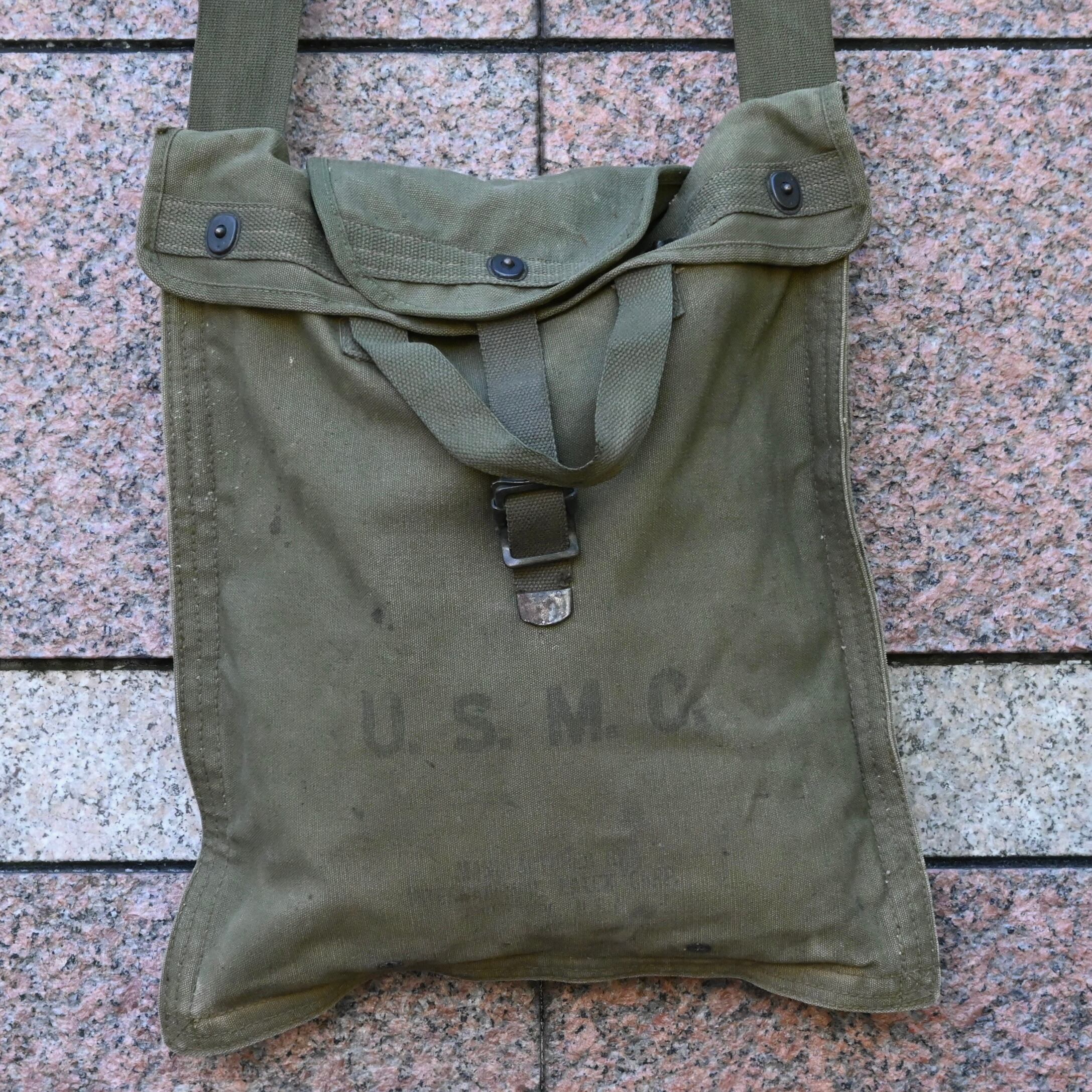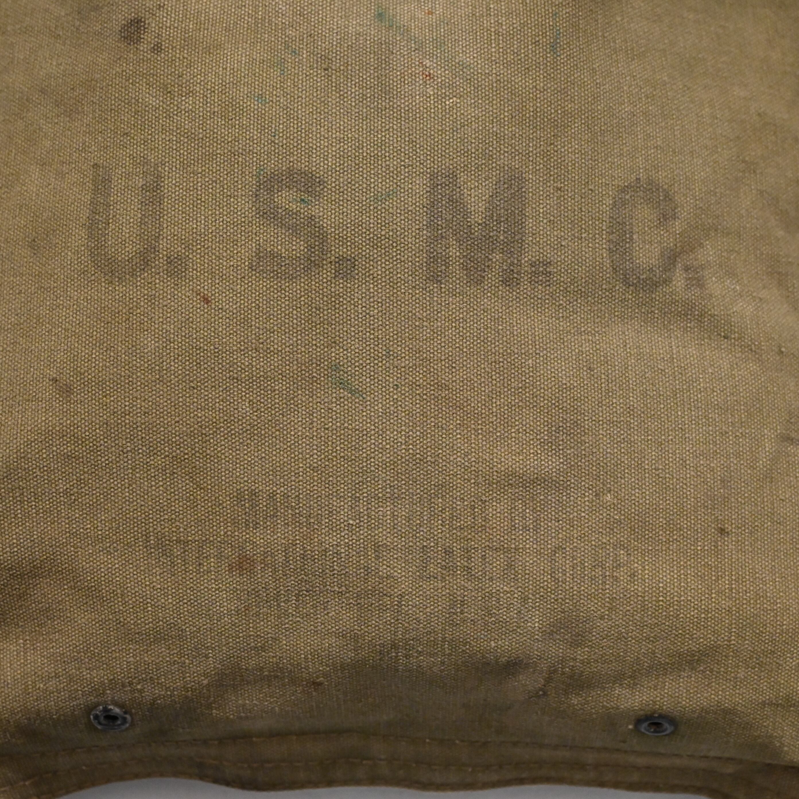 第二次世界大戦にてU.S.M.C.が水筒を入れるために使用していたバッグです。肉厚で固めのしっかりとしたキャンバス地で、ステンシル付きです。