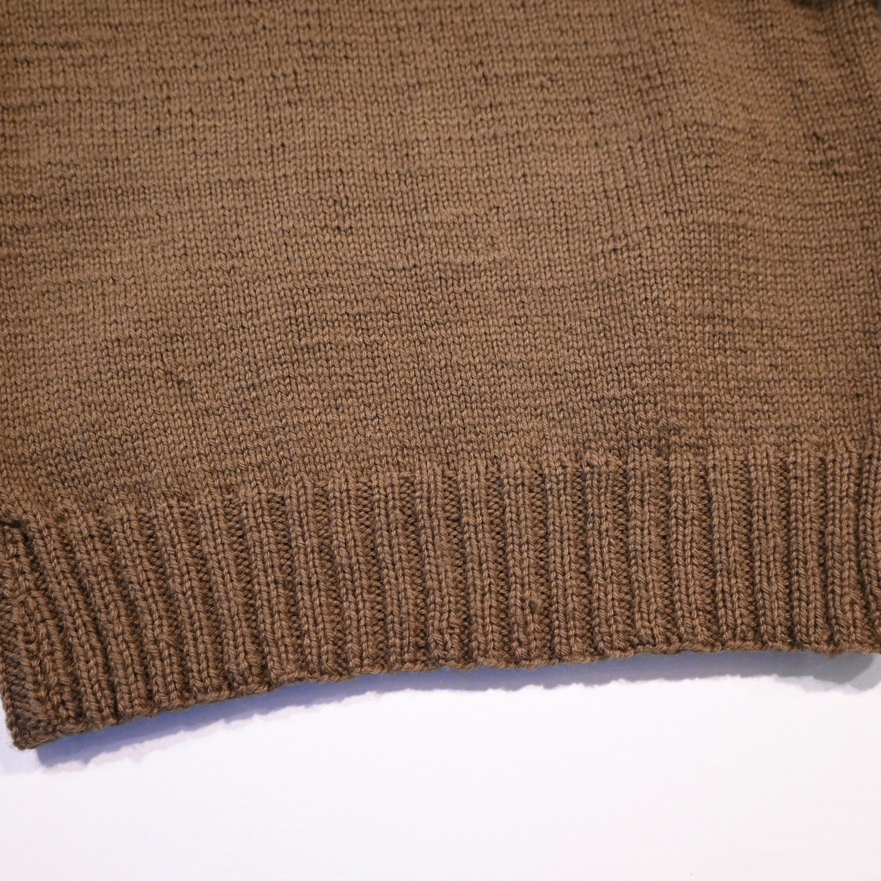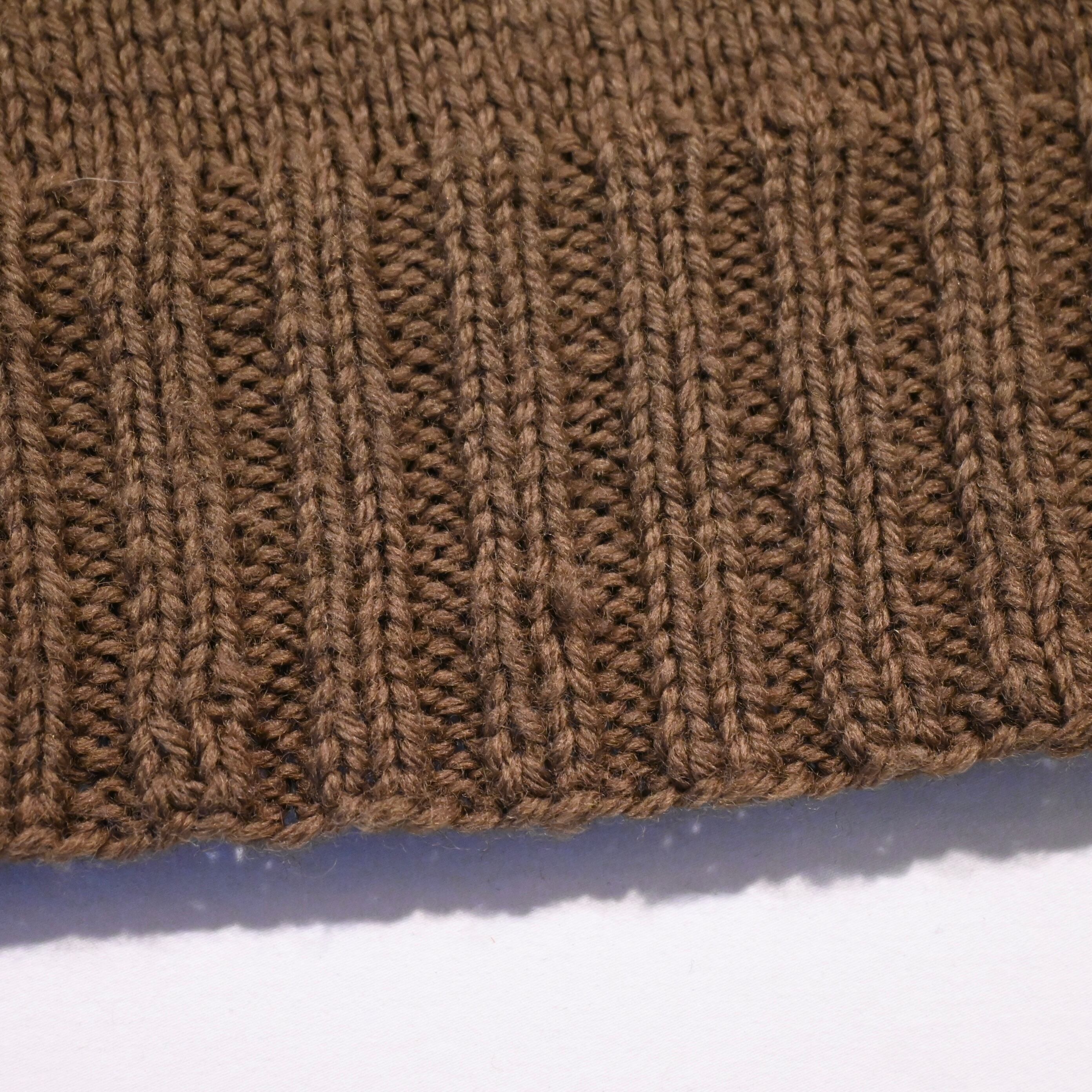 ざっくりとした硬めのウールの生地感とリブ部分の独特な編み方が魅力的なアイテムです。
