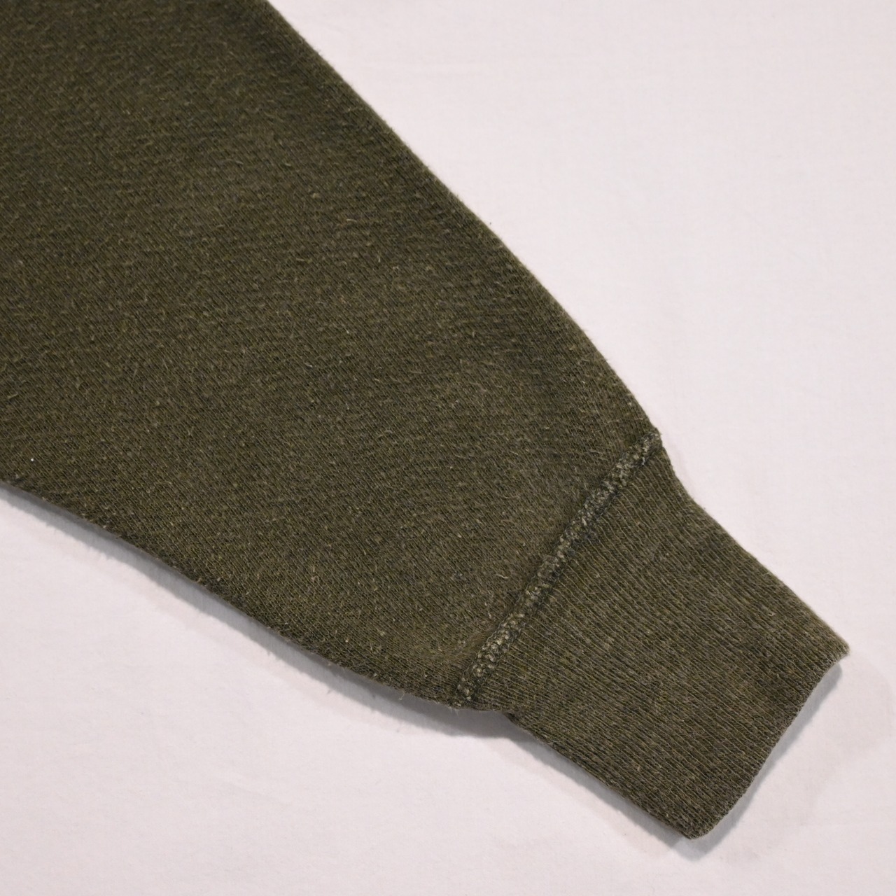 裾リブは継ぎ目のない仕様で、袖先までしっかりとステッチが入ります。