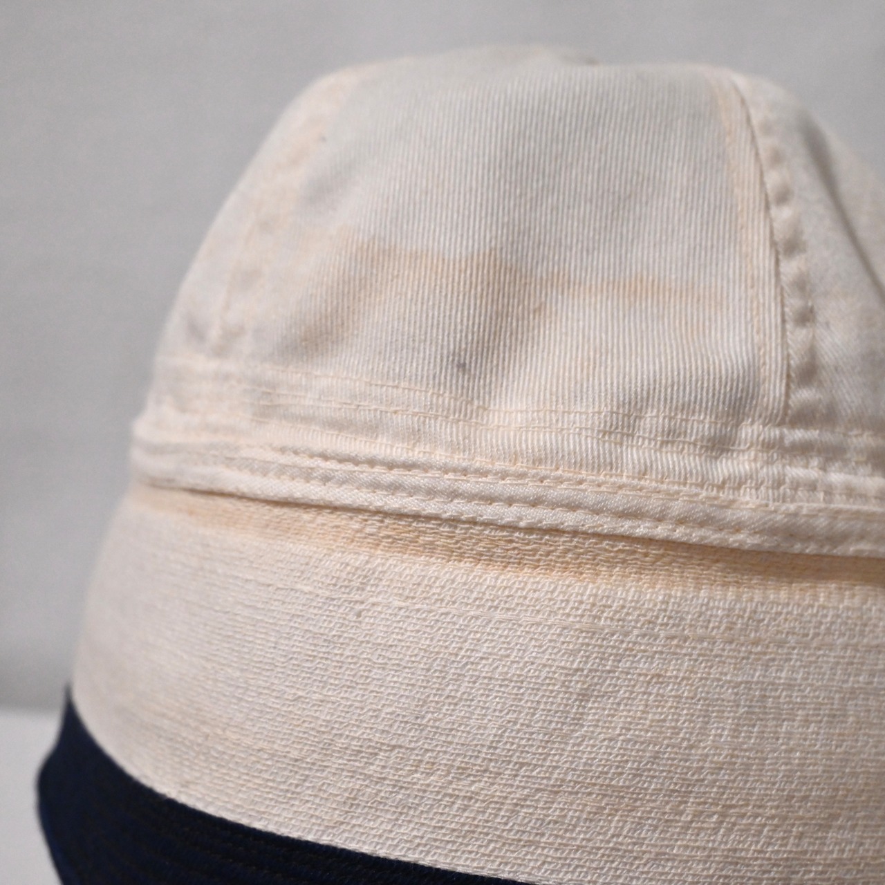 ツバ先にネイビーの切り替えの入る古いタイプです。70年代のUSNAのものではなく、40年代の海軍のものだと思われます。