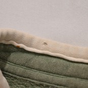 淡目のグリーンのカラーとオフホワイトのパイピングとのバランスが魅力的なアイテムです。