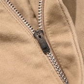 トップボタンは樹脂ボタンのタイプで、フロントはクイックのアルミジップが使用されています。