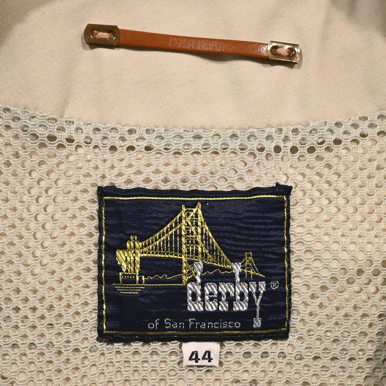 希少な大きめのサイズで中綿なしのモデルです。ライナーはダービーオブサンフランシスコらしいゴールドのペイズリー柄です。表記がありませんがUSA製だと思われます。