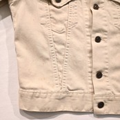 デニムのものに比べピケですので生地感も薄く、カラーがアイボリーで軽やかさのある印象です。暑苦しくなく着用していただける点が魅力です。