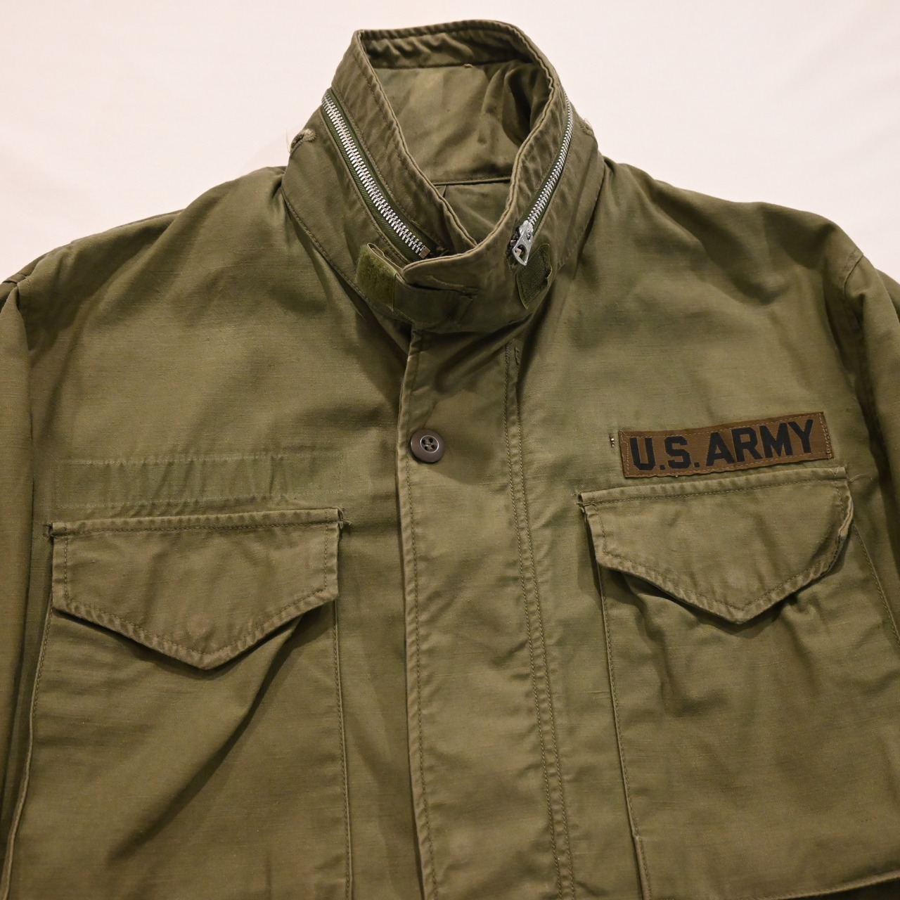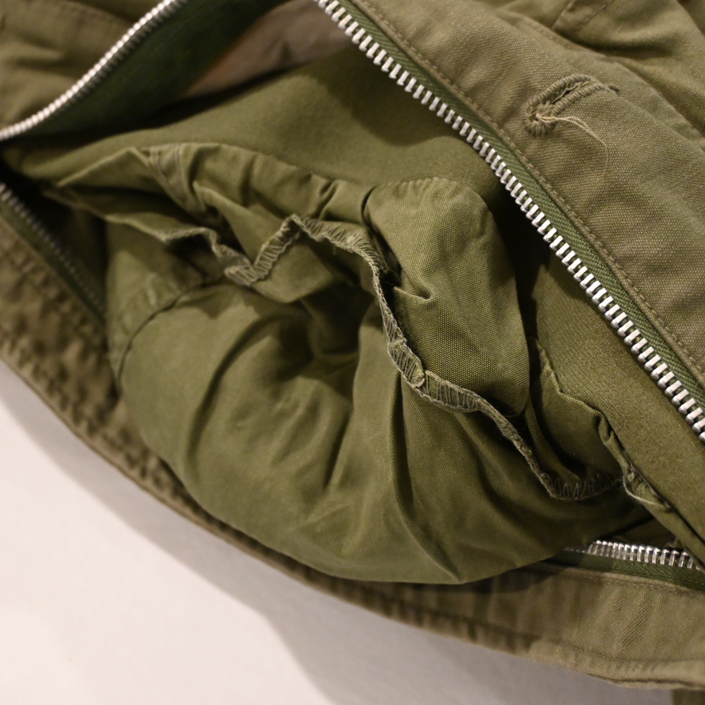 M65フィールドジャケットの中でもエポレットなしでアルミジップが使用されている希少な1stタイプです。ジップはフロント、ネックともにコンマーが使用されています。