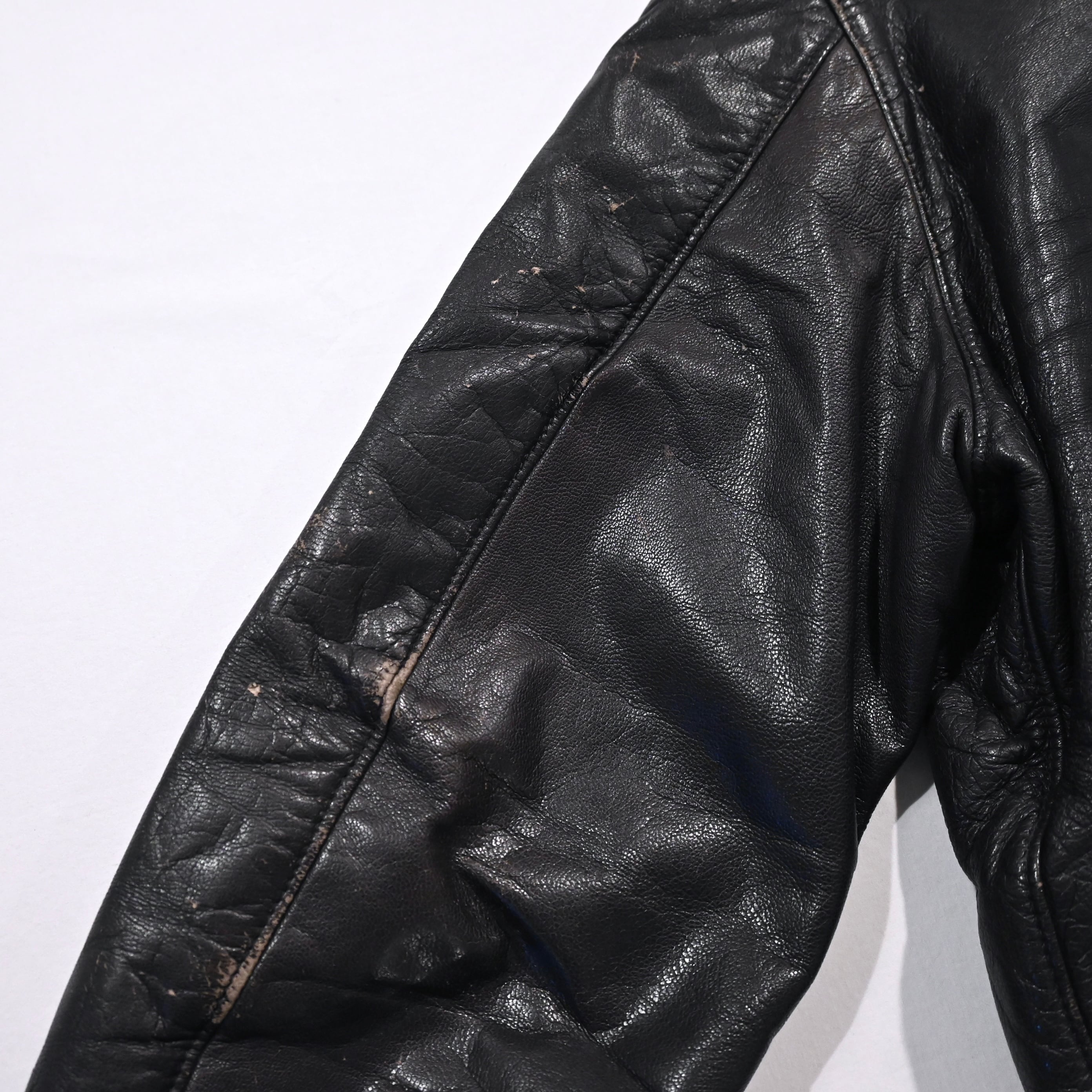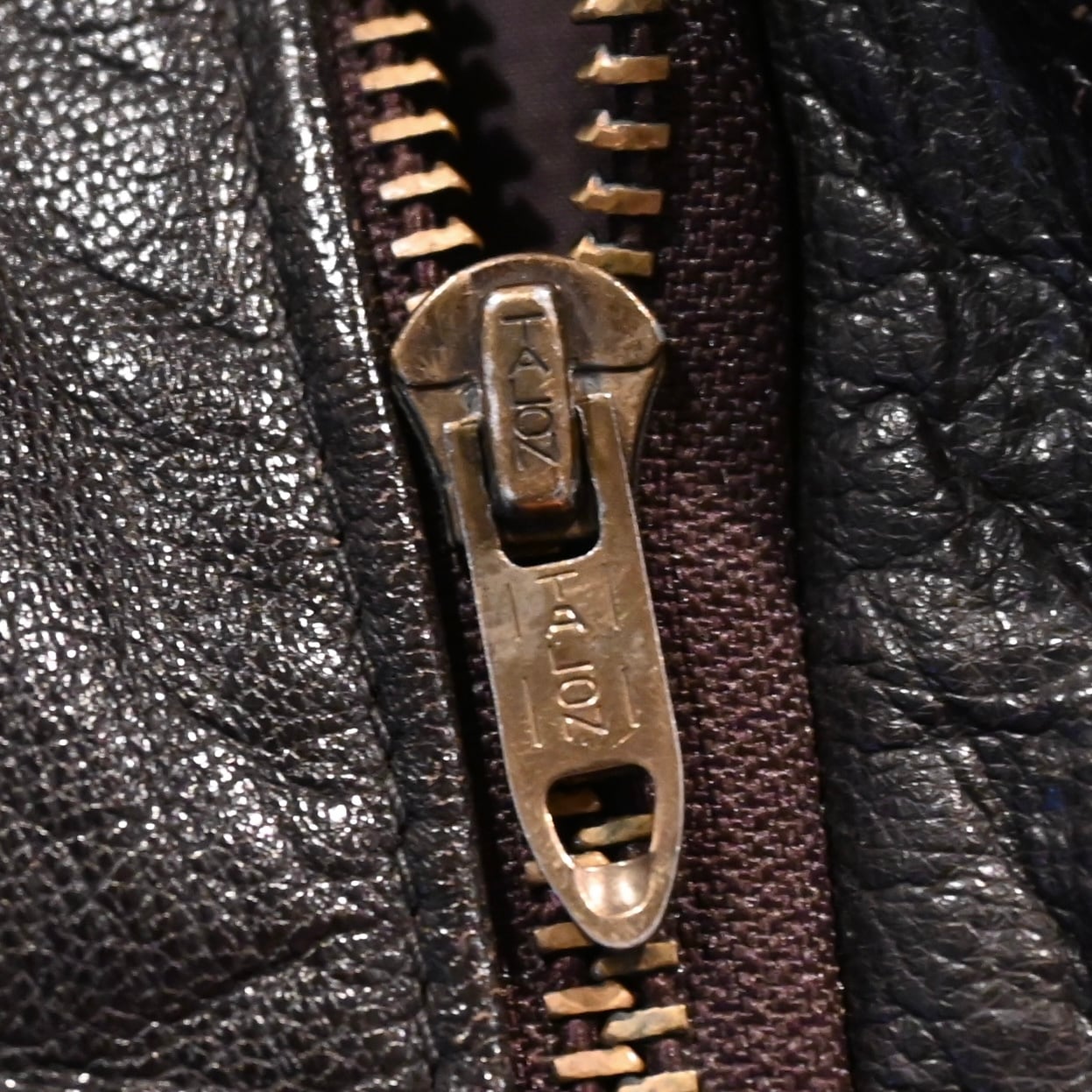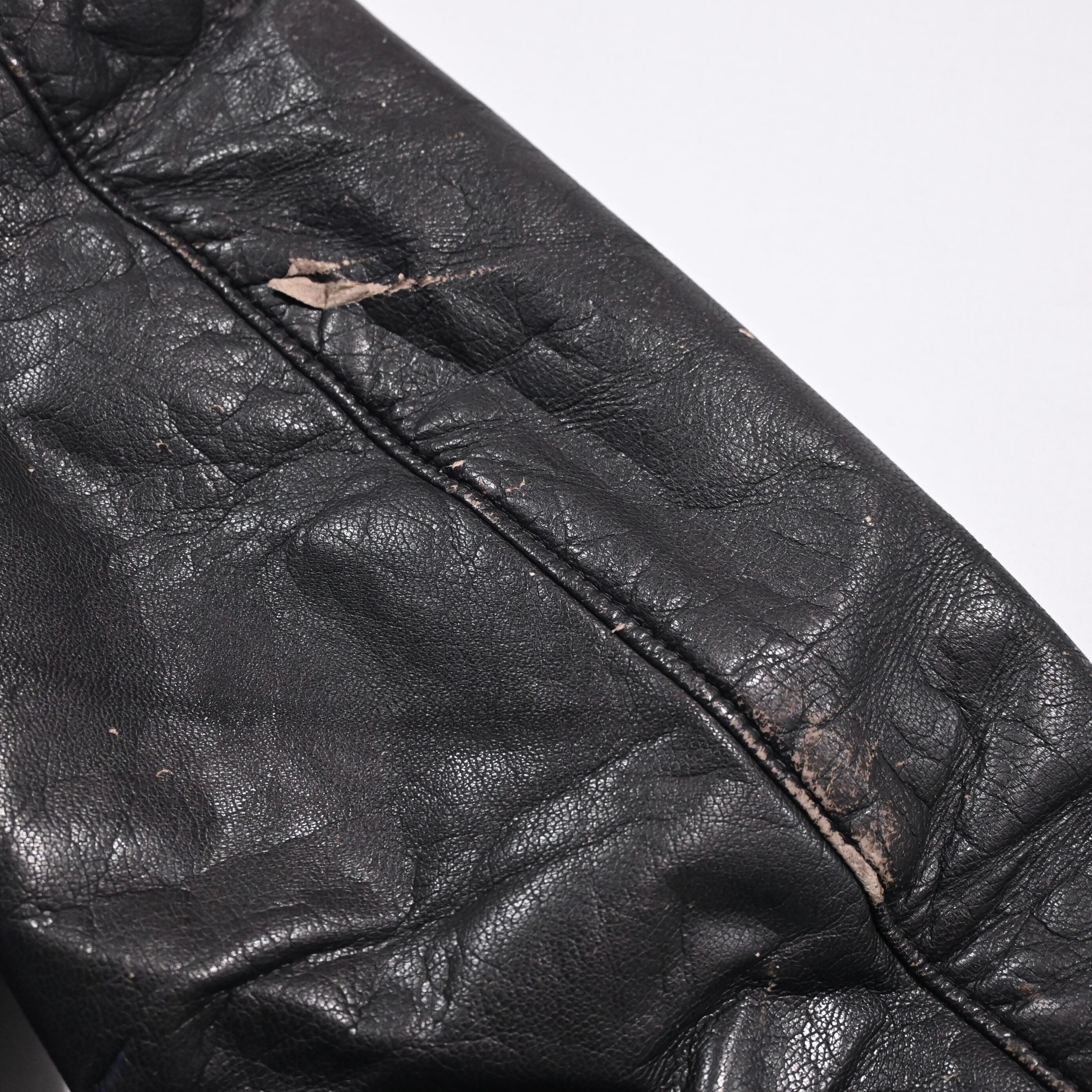 レザーの状態は全体的にスレはありますが、硬化はしておらず、着こまれた柔らかいレザーが着用しやすい個体です。裏地に1箇所1cm程度破れがございます。