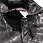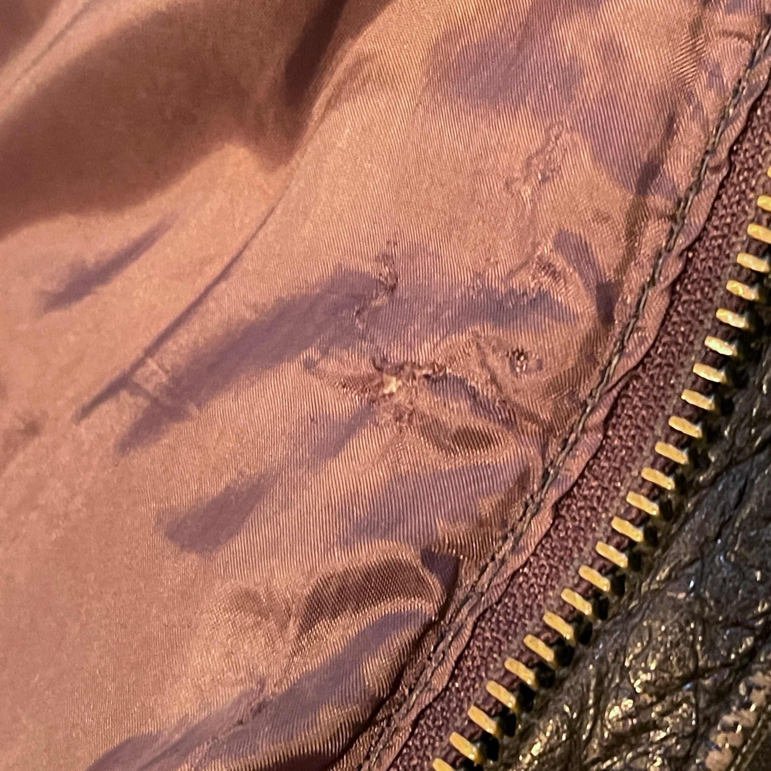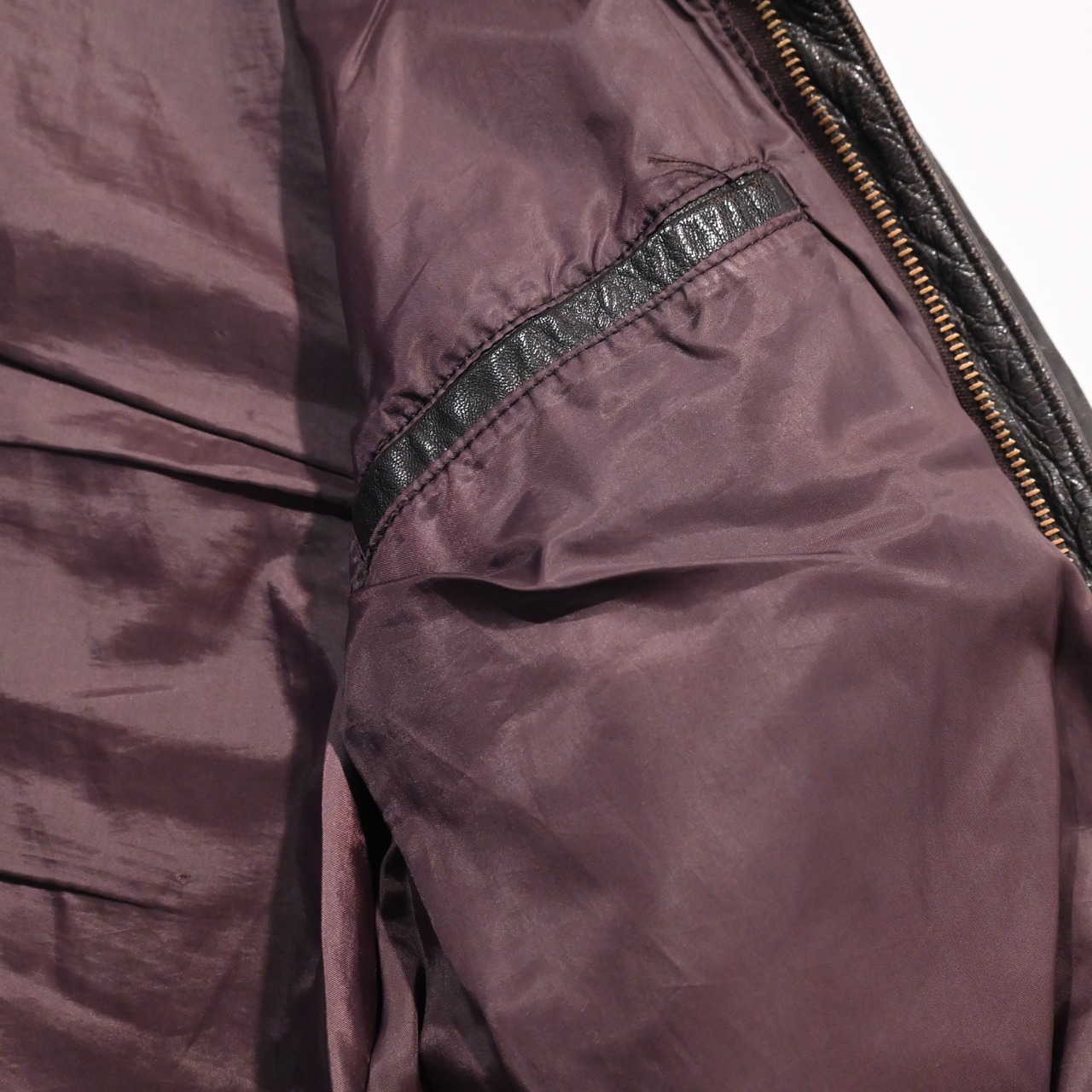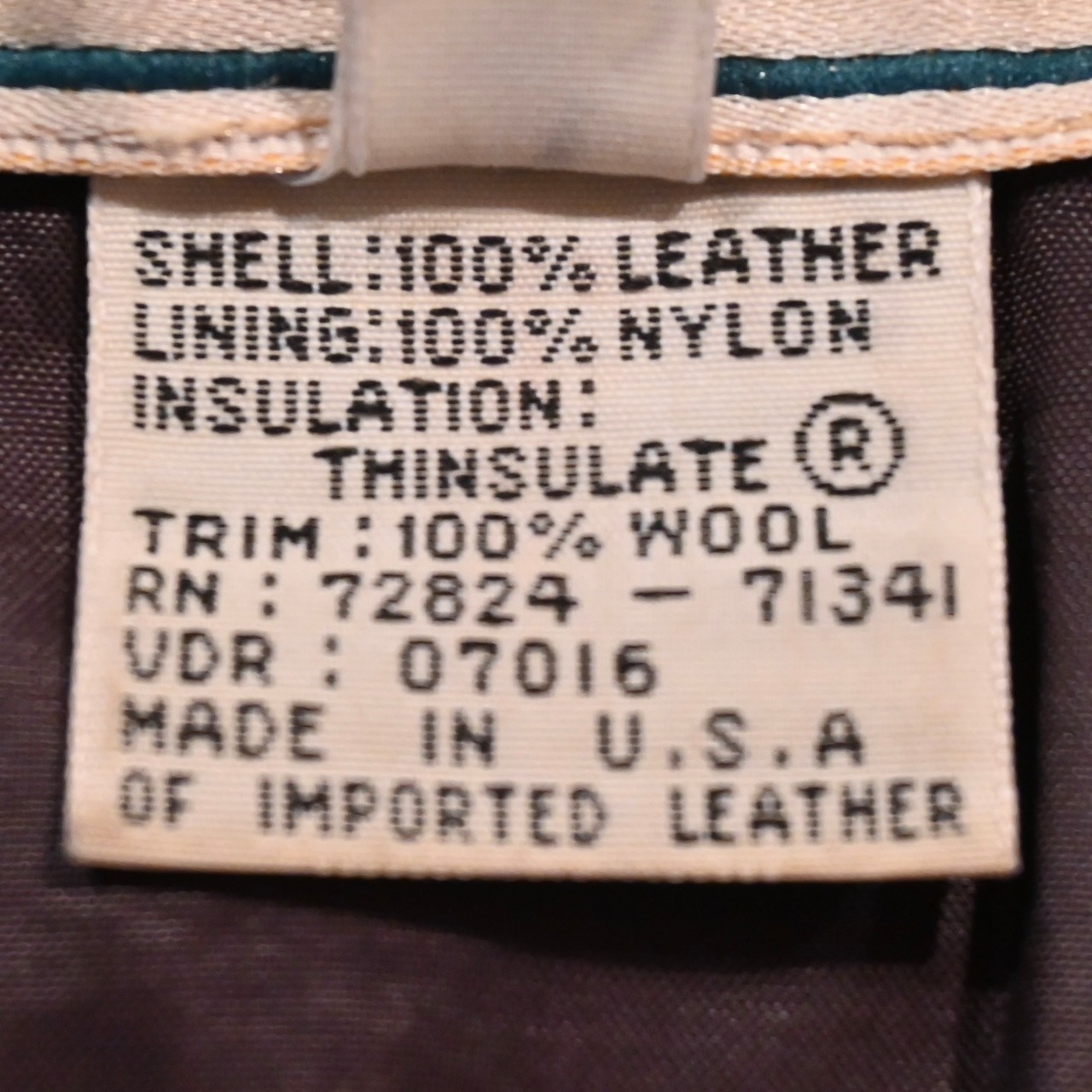 レザーの状態は全体的にスレはありますが、硬化はしておらず、着こまれた柔らかいレザーが着用しやすい個体です。裏地に1箇所1cm程度破れがございます。