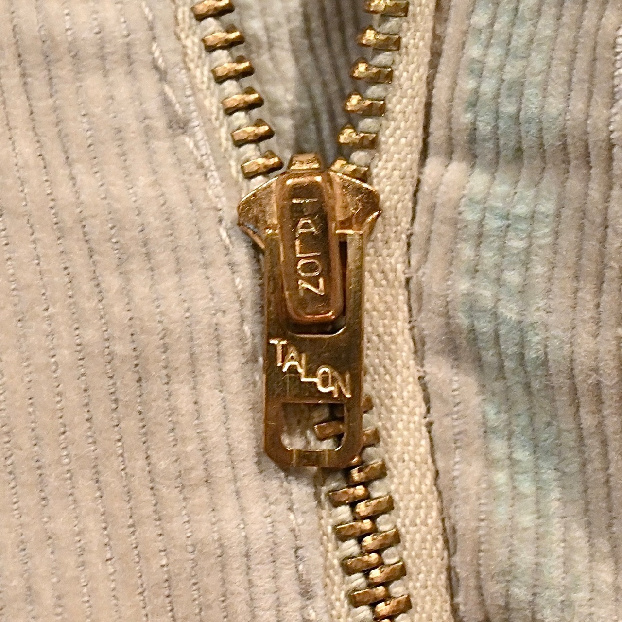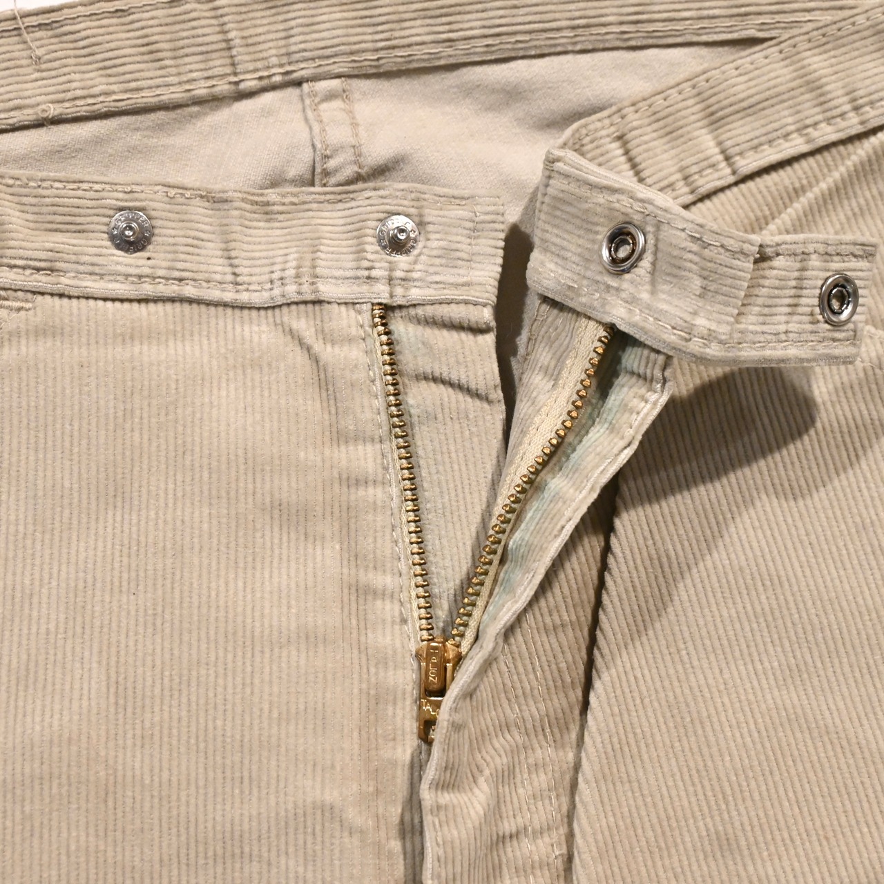 フロントはタロンジップ、ウエストのボタンはグリッパーのスナップボタンです。
